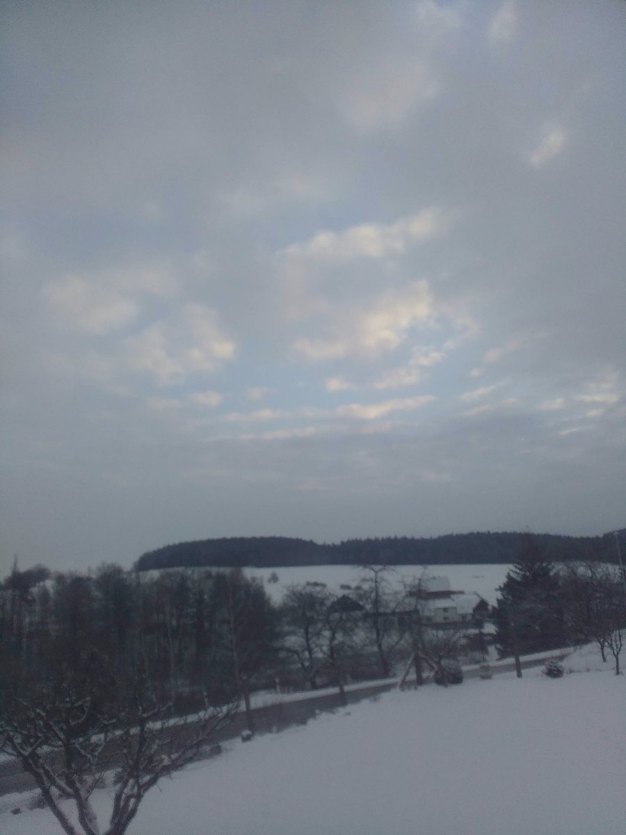 Oblačnost 4,7%, zákl.oblačnosti 580,73m.n.m., tlak 1017,8hPa, dohlednost 40km, rel.vlhkost 93,4%, abs.vlhkost 2,12g/m3, SV vánek 36° 1,1m/s(1 Bft), poc.teplota -14,34°C, ochl.větrem -12,63°C, tepl.ros.bodu -11,27°C, tepl.mraků -16,11°C, délka dne u nás = 8hod.44min.8vt.
