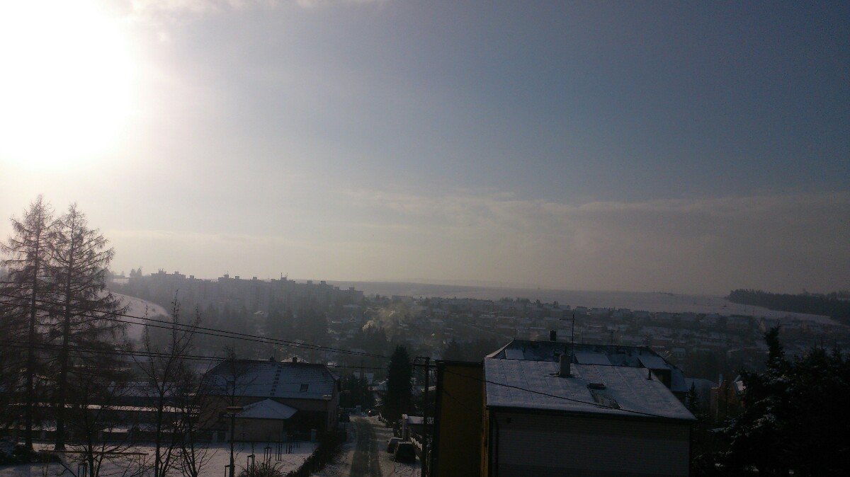 Slabé až mírné sněžení, tlak 1026,2 hPa, SV vítr do 3 m/s.
