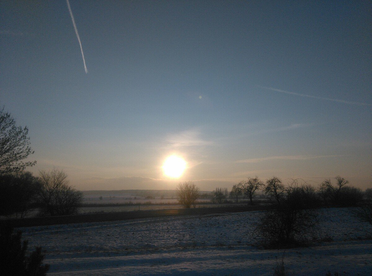 ...zcela zatažená obloha od šedočerné přes bílou po prosvítající modrou, mírný vánek, sníh zatím všude sypký....