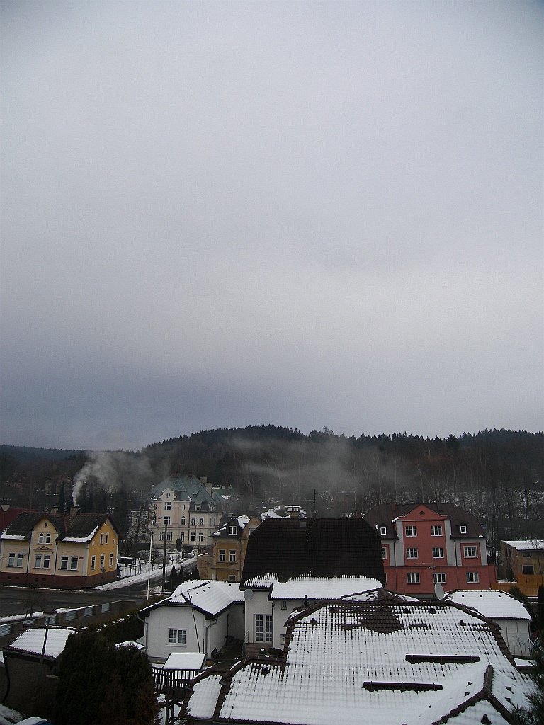 Udělalo se hezky, slunce svítí, sníh se ztrácí. Tlak 1020 hPa, vlhkost 85%, vítr J 0,4 m/s.