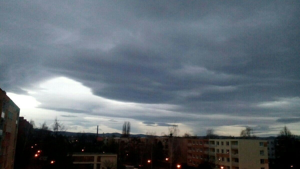 Oblačnost 100%, zákl.oblačnosti 458,01m.n.m., tlak 1022,6hPa, dohlednost 6km, rel.vlhkost 97,7%, abs.vlhkost 5,21g/m3, S větřík 6° 3,2m/s(2 Bft), poc.teplota -2,44°C, ochl.větrem -1,98°C, tepl.ros.bodu 1,07°C, tepl.mraků -3,11°C, délka dne u nás = 9hod.12min.43vt.