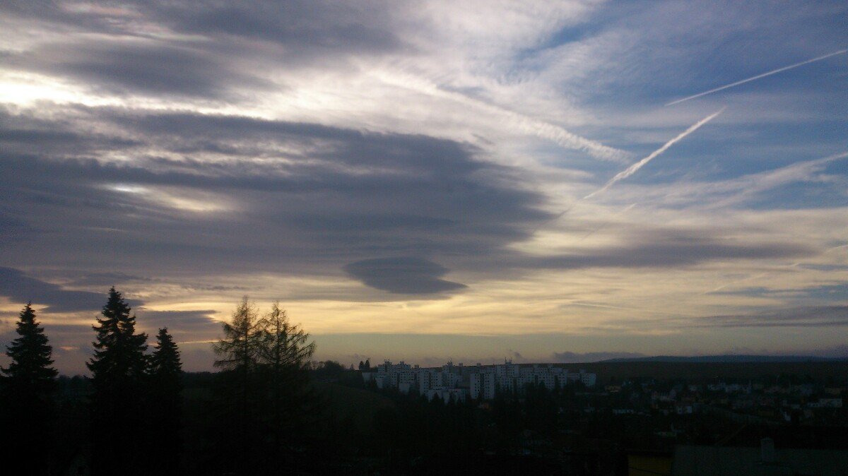 Tlak 1022,4 hPa, vlhkost 91 %, J vítr do 3 m/s. Ranní minimum -0,7°C.
