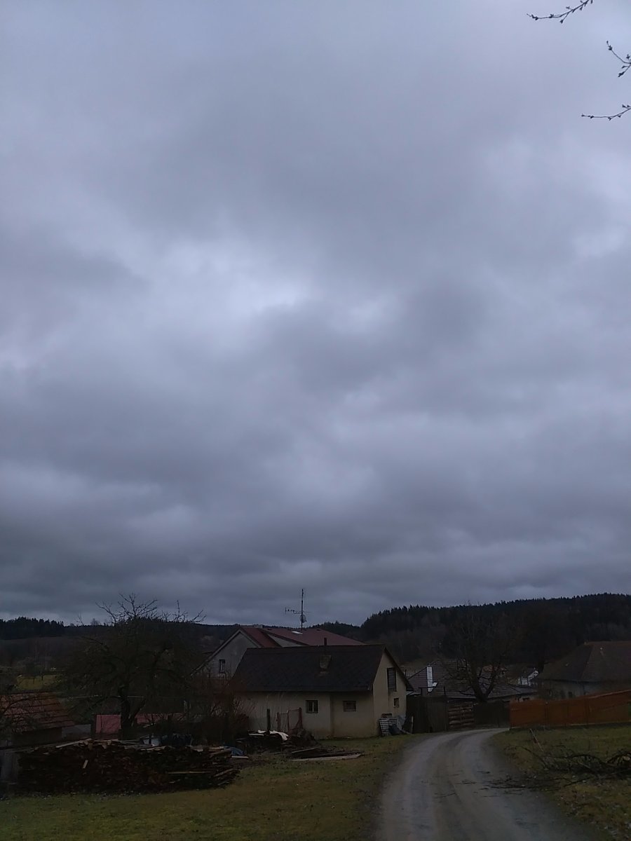 Přestalo pršet,oblačnost se protrhává,tlak 1015hPa,vlhkost 94%