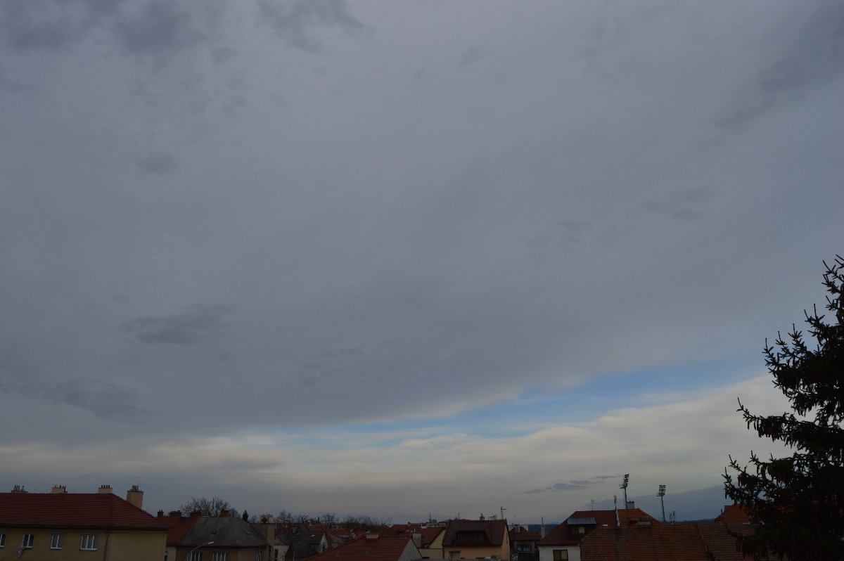 Dopoledne bylo prechodne skoro jasno jinak je skoro zatazeno nebo uplny zatazeno. Vitr je zatim jen mirny.