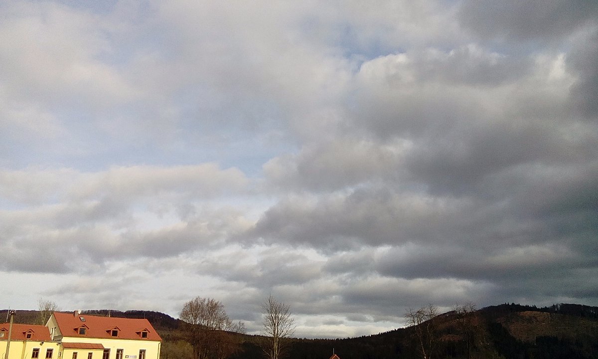 Celou noc a dopoledne prší načež se to obrátilo v občasné sněžení které hned odtává.Sních se drží v polohách od asi 600 m.n.m.Tlak 1000,4 hpa,vlhkost 76%,mírný vítr...