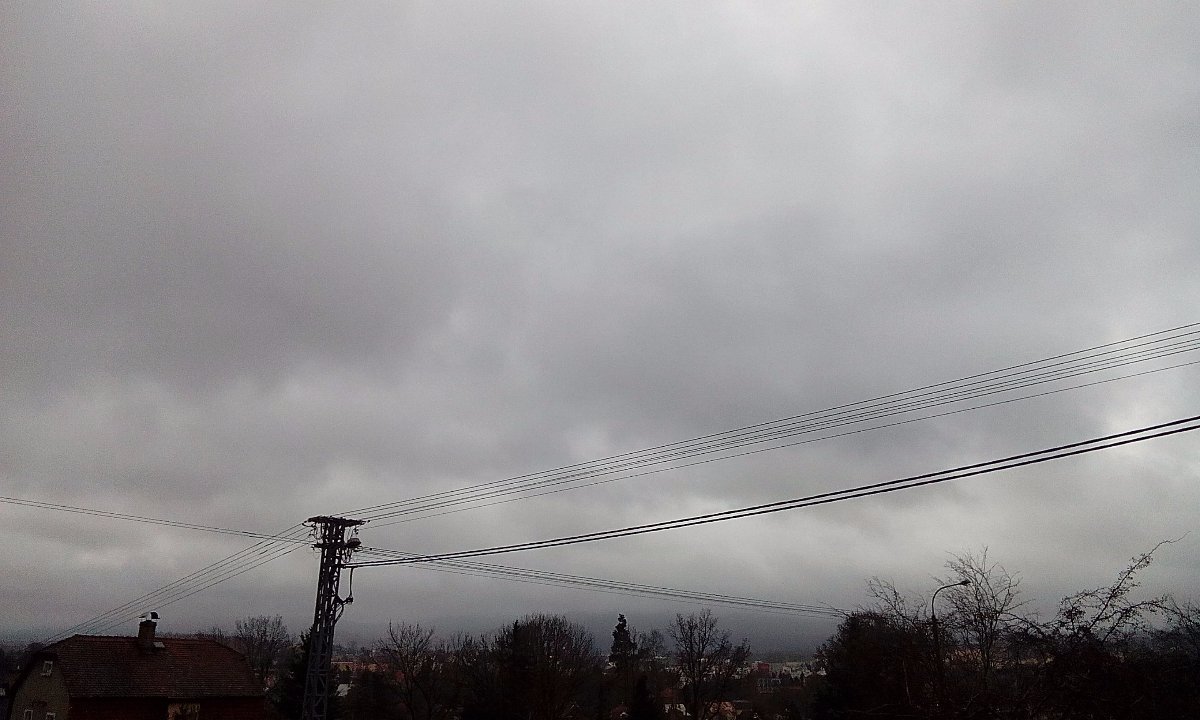 Je zatazeno a vitr vane slaby. Asi tak do 9 hod padal dest se snehem.