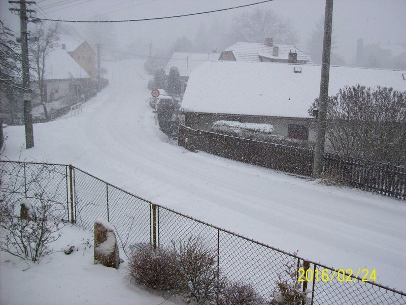 Občas spadne jednotlivá sněhová vločka, tlak 1016,7 hPa, vlhkost 82 %, SZ vítr 4-8 m/s.
