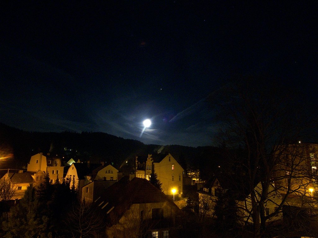 Odpol.slunečno,silnější vítr.nyní obloha samá hvězdička a na východě vychází velká oranžová koule.Hezký večer všem.