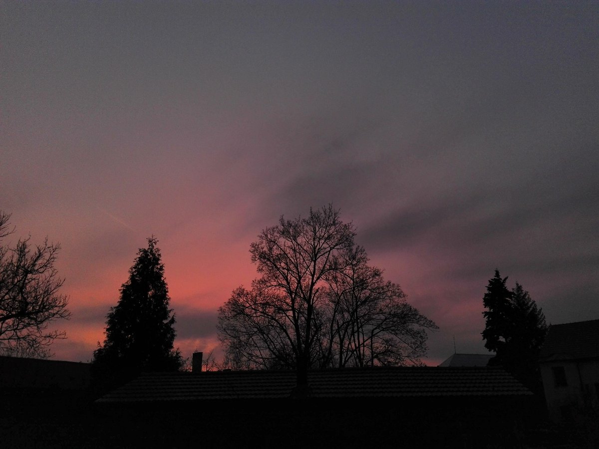 Vlhkost 58%, vítr SV 4 m/s, Slunce pekne zrudlo...
