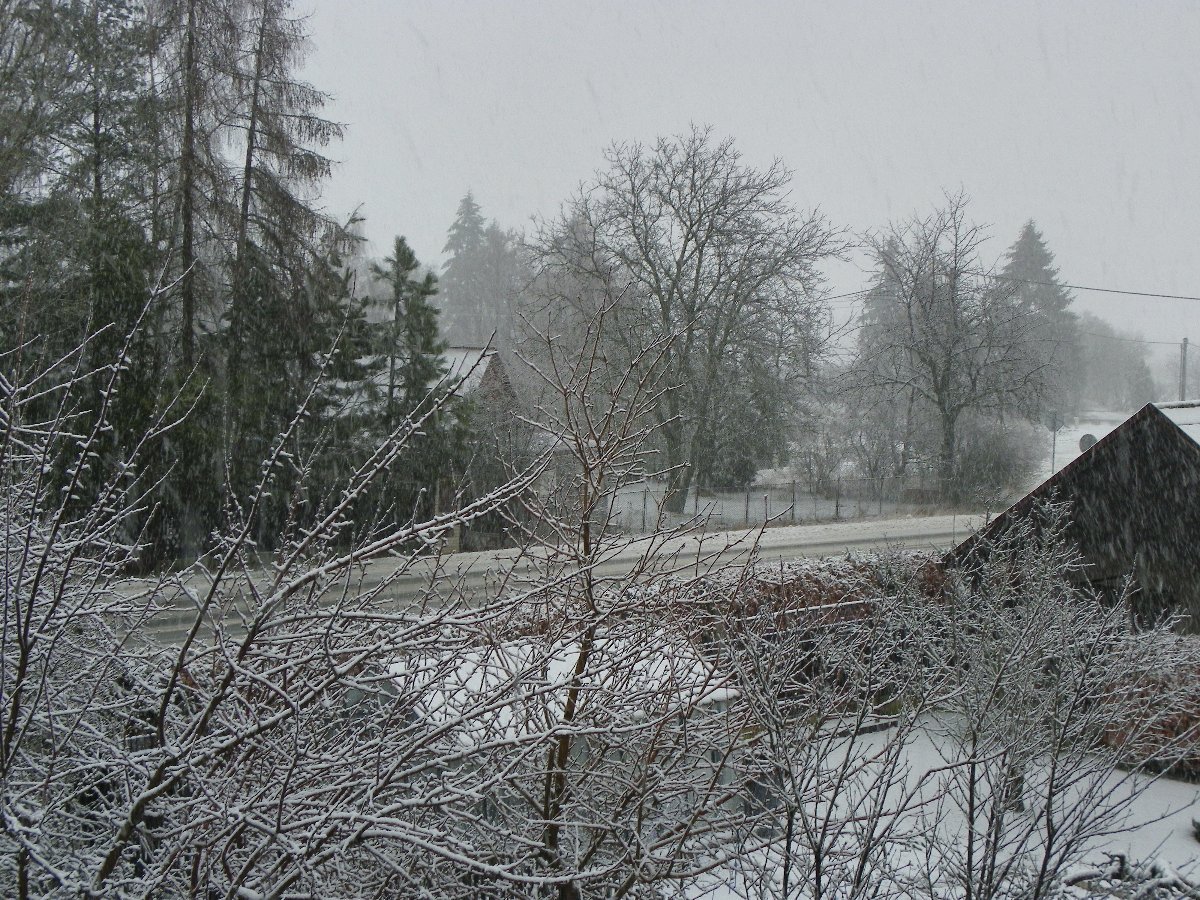 Včera odtál sníh a dnes je opět zde.Sněžení neslábne,ale blíží se konec srážek.