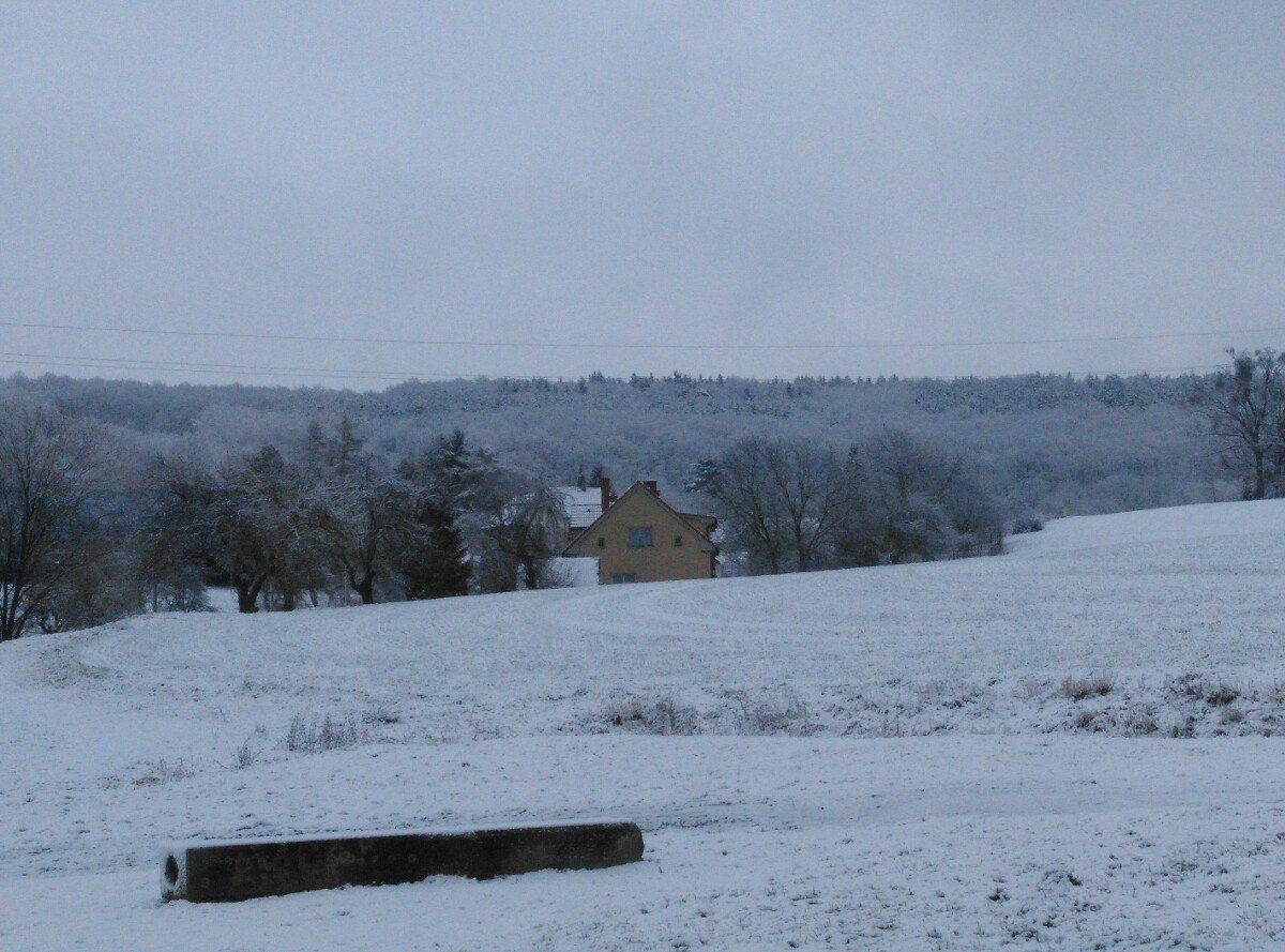 Trvale sněží, avšak již slabší intenzity. Sněhová pokrývka mezi 5 až 10 cm (méně v obci mezi domy, mimo na otevřeném prostranství více sněhu)