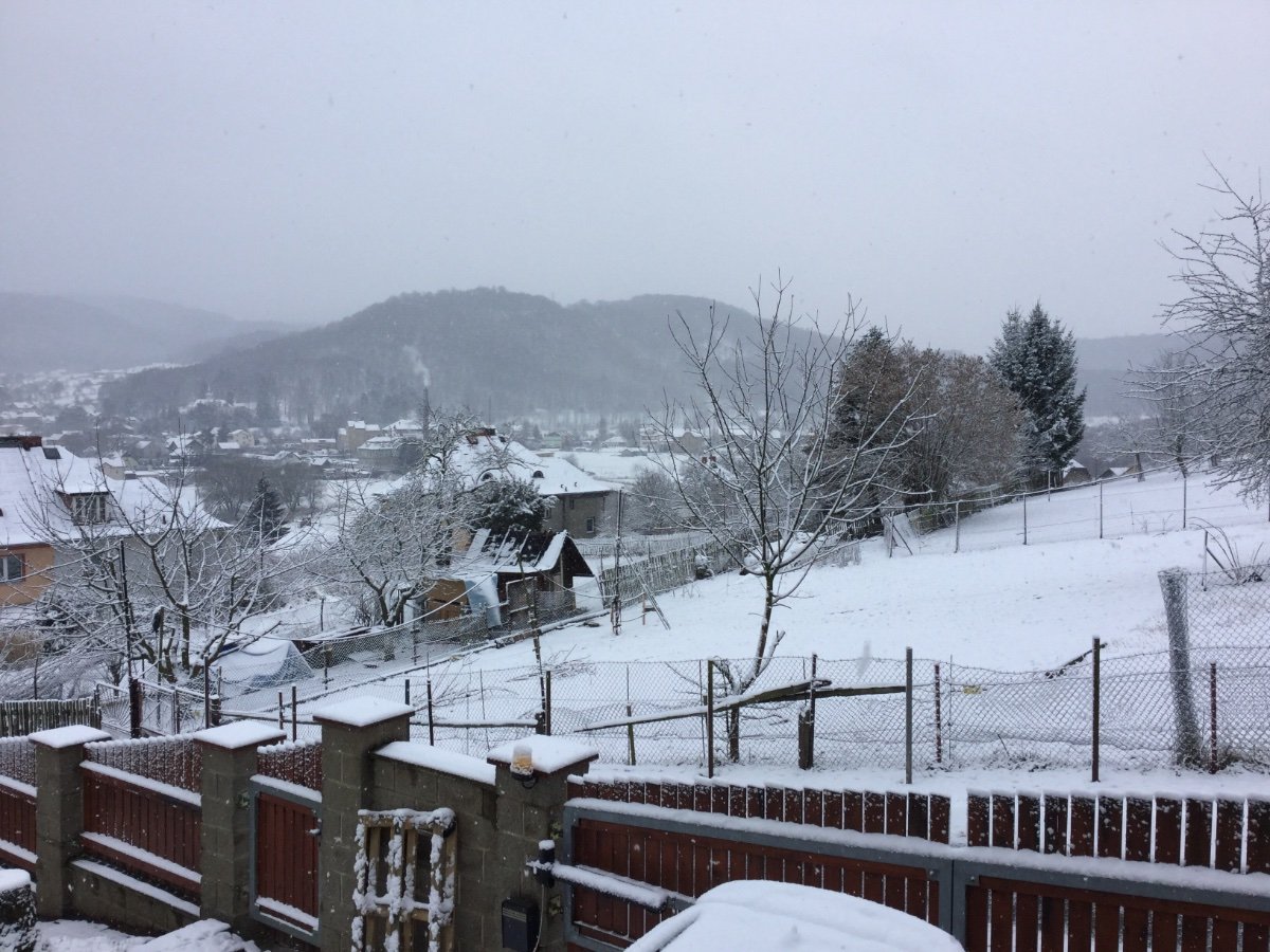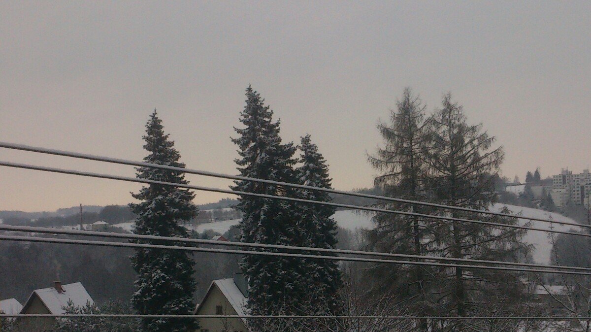Dokonalé zimní ráno, vše je krásně obalené. Začíná opět slabě sněžit.