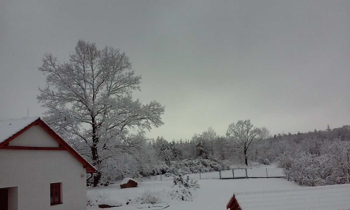Sněhová pokrývka je různá. Od 5 cm mezi domy až po 15 cm v okolí, například v lese.
