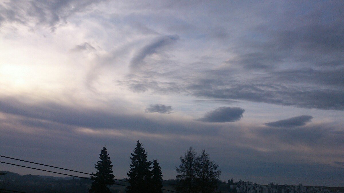 Sníh se ztrácí, Tlak 996 hPa, vlhkost 70%, vítr Z 0,8 m/s..