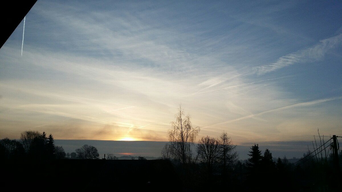 ...vyjasňování, ochlazování, zapadající slunce a zarudlá obloha na východě - na západě jen tento náznak, napučené jívy, olše již 14 dní, kvetoucí bledule, krokusy, okrasné sasanky, zvonky a prvosenky u zdí paneláků - není něco špatně ?