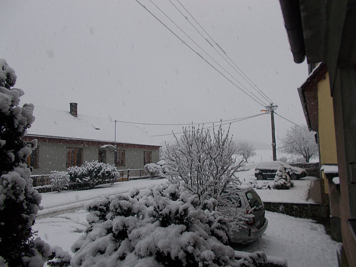 ...přízemní mrazík - na trávě šedivák, od soumraku namrzlá okna aut, téměř bezvětří, oblačnost 3/10 skoro bez pohybu - největší při východním obzoru - zakryla dnešní vyhoupnutí "za ruce se držíce" slunce (6:38) a měsíce (6:11) nad naše kopečky..