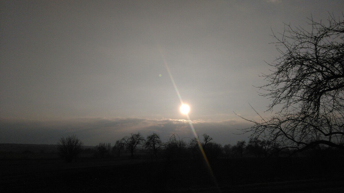 Vánek,tlak 1013 hPa,vlhkost 72%,Slunce před západem.