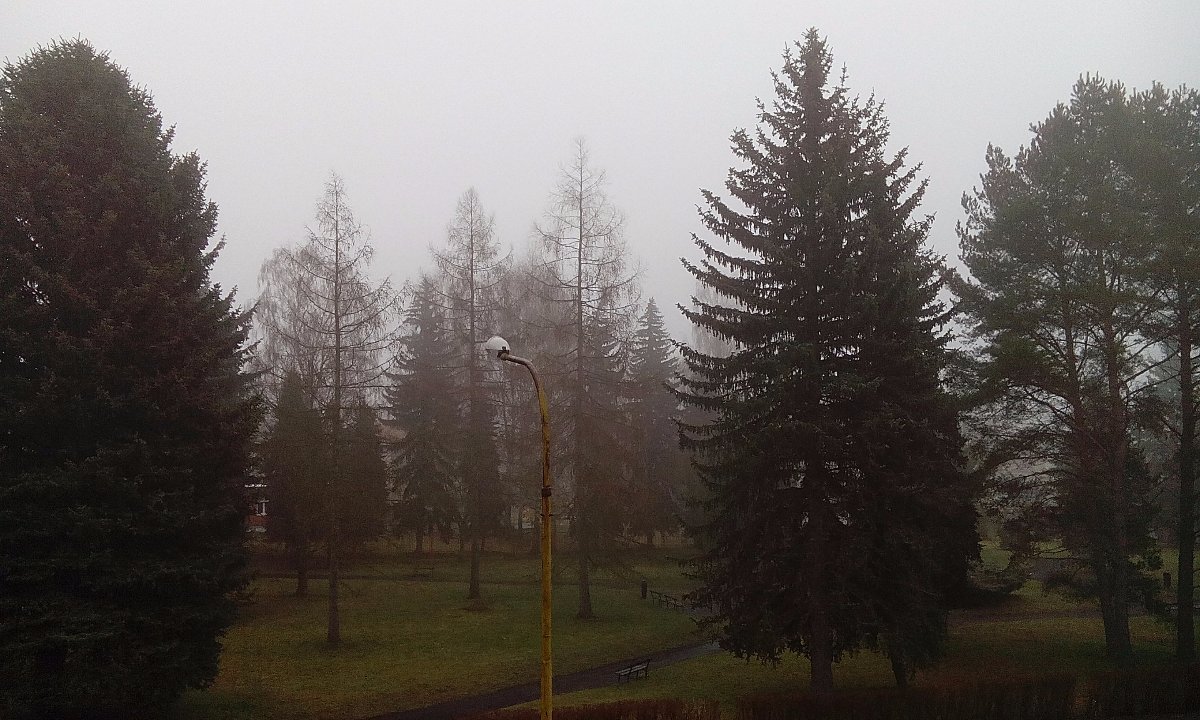 ...zčernalý západní obzor, zcela zataženo, chladno, slabý SV vítr ....