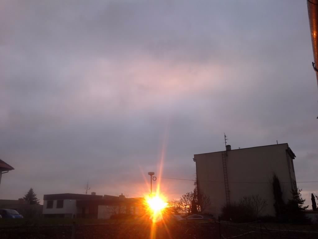 ...měsíček dohlížející na západ slunce, utichající vítr avšak na obloze rychlý posun oblačnosti (8/10) převážně nízké na západ...