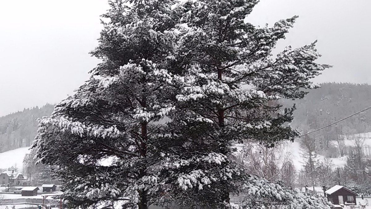 Momentálně poměrně silně sněží (krupky), tlak 1021,3 hPa, vlhkost 95 %, jen slabý SV vítr.