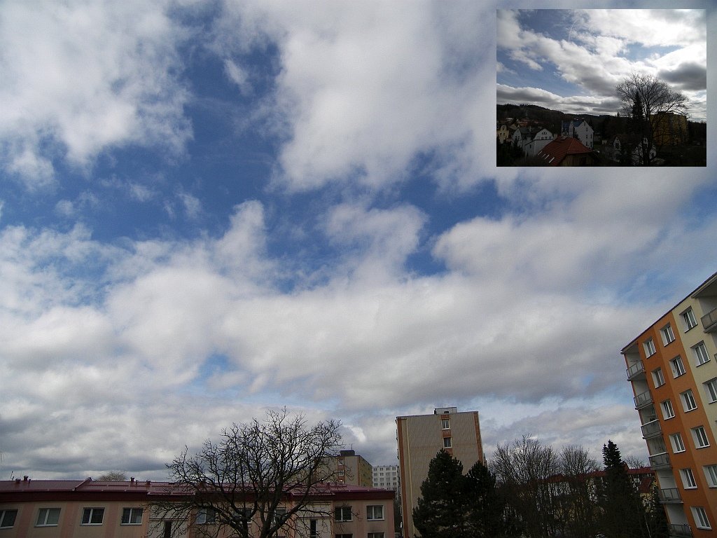 Slabý vítr,tlak 1008hPa,oblačnost se protrhala