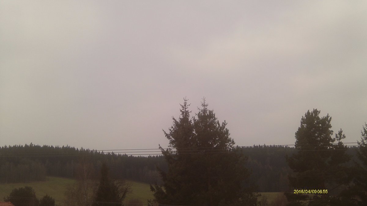 Mlhavo ,zataženo,,sem tam nějaká kapka. Teplota 6°C.