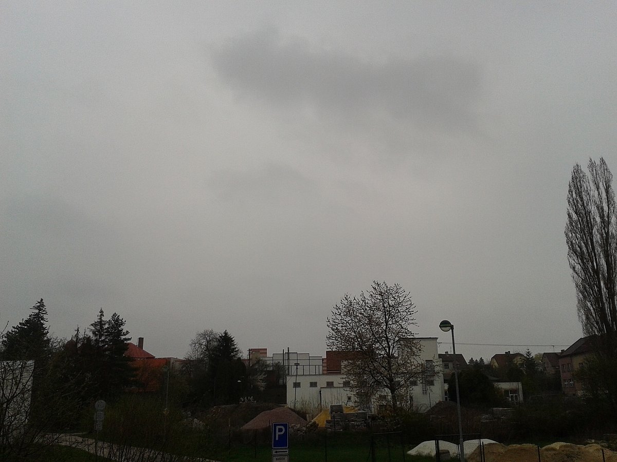 ... sluníčko přes záclonu řasovité oblačnosti 10/10 vysušilo ranní rosu a vyhání opar nad lesy, vánek jen zvolna otáčí turbíny na protější střeše paneláku a od západu se plíží opravdová oblaka....