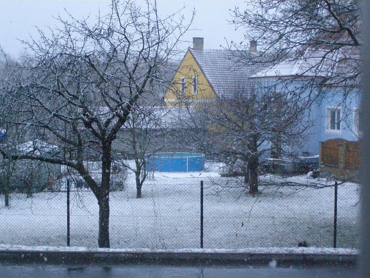 Zataženo, slabounce sněží, tlak 1007,8 hPa, vlhkost 93,4%, viditelnost 4 km, vítr Z 1,2 m/s.