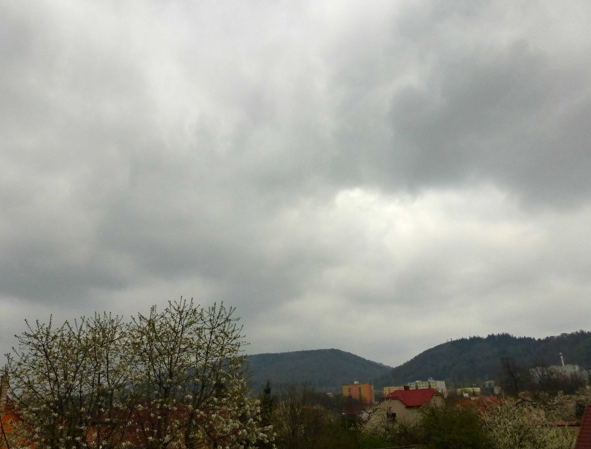 tlak 1008 hPa, vlhkost 96%, vítr odSZ