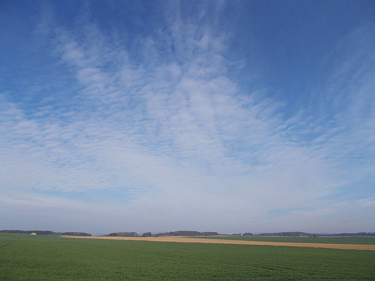 Ráno bylo skoro jasné, teď už je obloha zatažená, jen chvílemi se ještě proderou sluneční paprsky ...