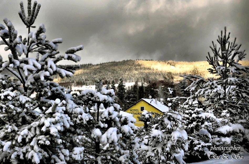 Inverze pokračuje, tlak 1022,2 hPa, viditelnost 250 m, vítr JV 14 km/hod., vlhkost 97,9%.