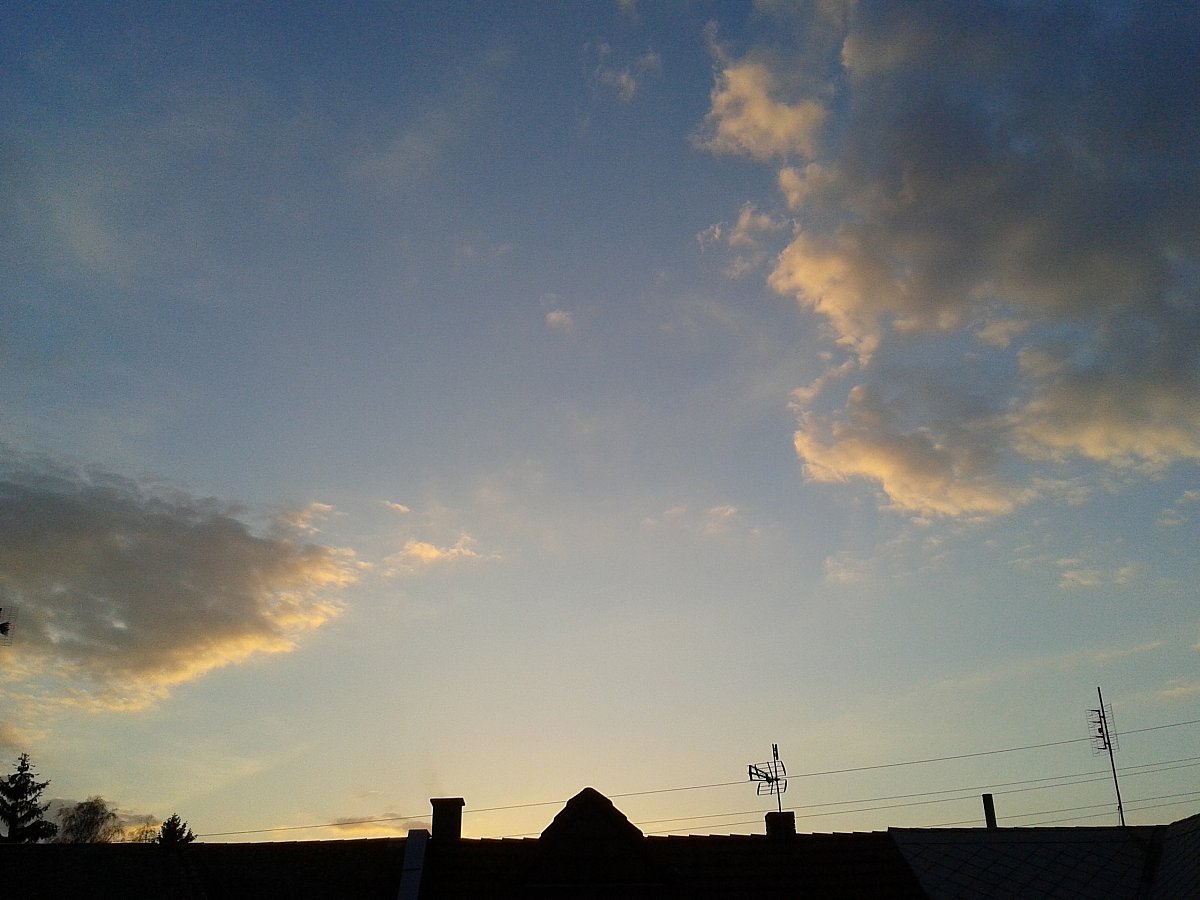 Ranní přímrazek vystřídal chladný a větrný den.Odpol. oblačno,teď aktuálně obloha vymetená,jen sem tam čmouha,měsíc se dívá do šera.
