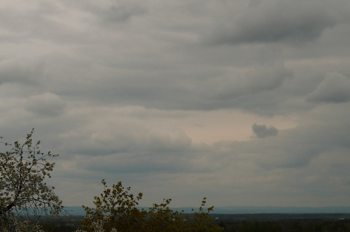 Chladno, sněhové přeháňky. Na fotografii přeháňka na domažlicku...