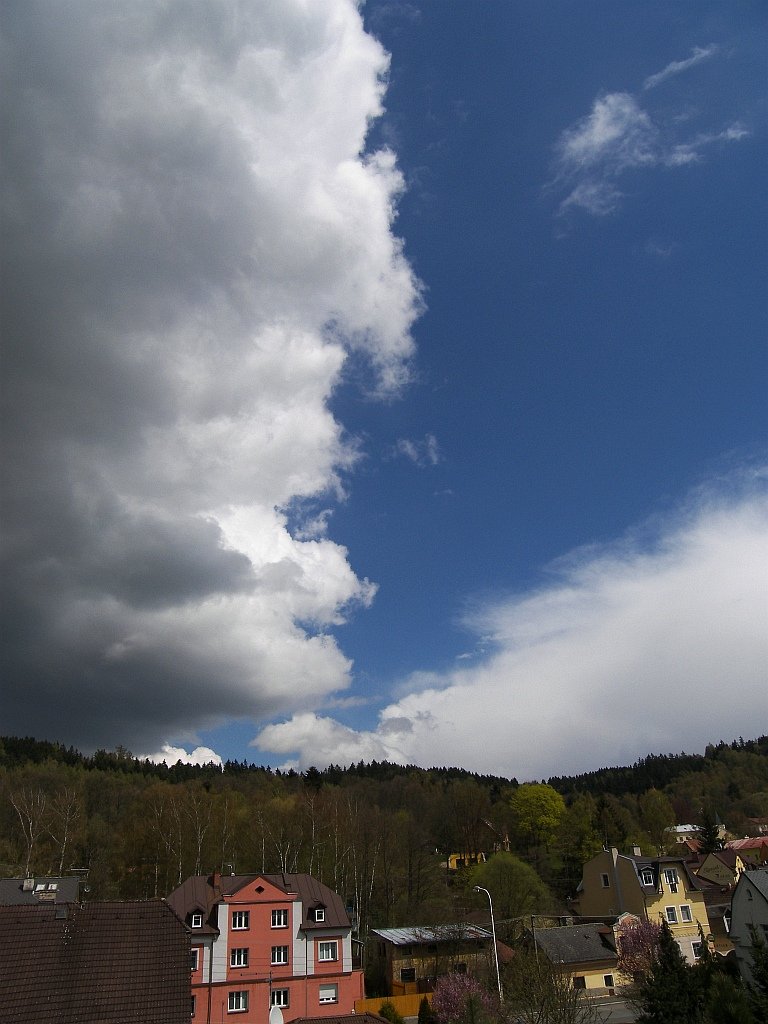 Je oblacno a sz smerem nas obchazi prehanka no tet prave zacalo poprchavat. Vitr je mirny.