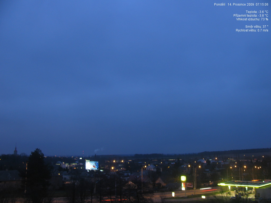 Skoro jasno,tlak 1021 hPa,vlhkost 66%,min. ranní teplota -5.8°C.Přeju hezký den.