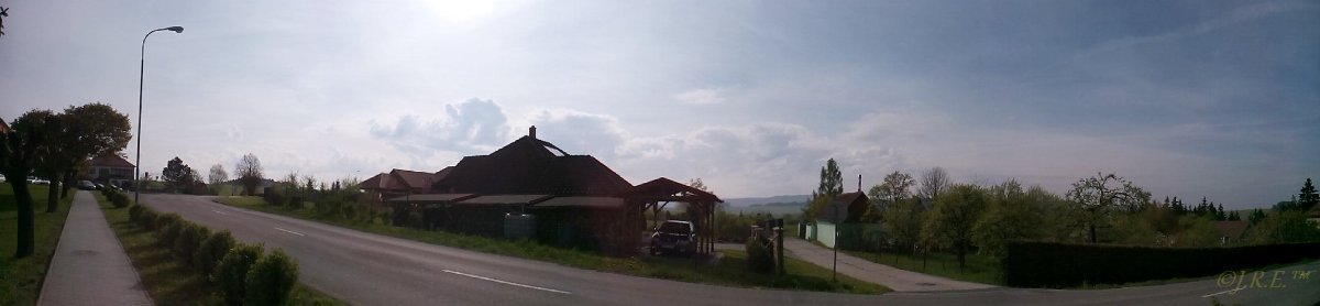 Přes oblačnost prosvítá Slunce, tlak 1018,3 hPa, vlhkost 76 %, V vítr 4-9 m/s.