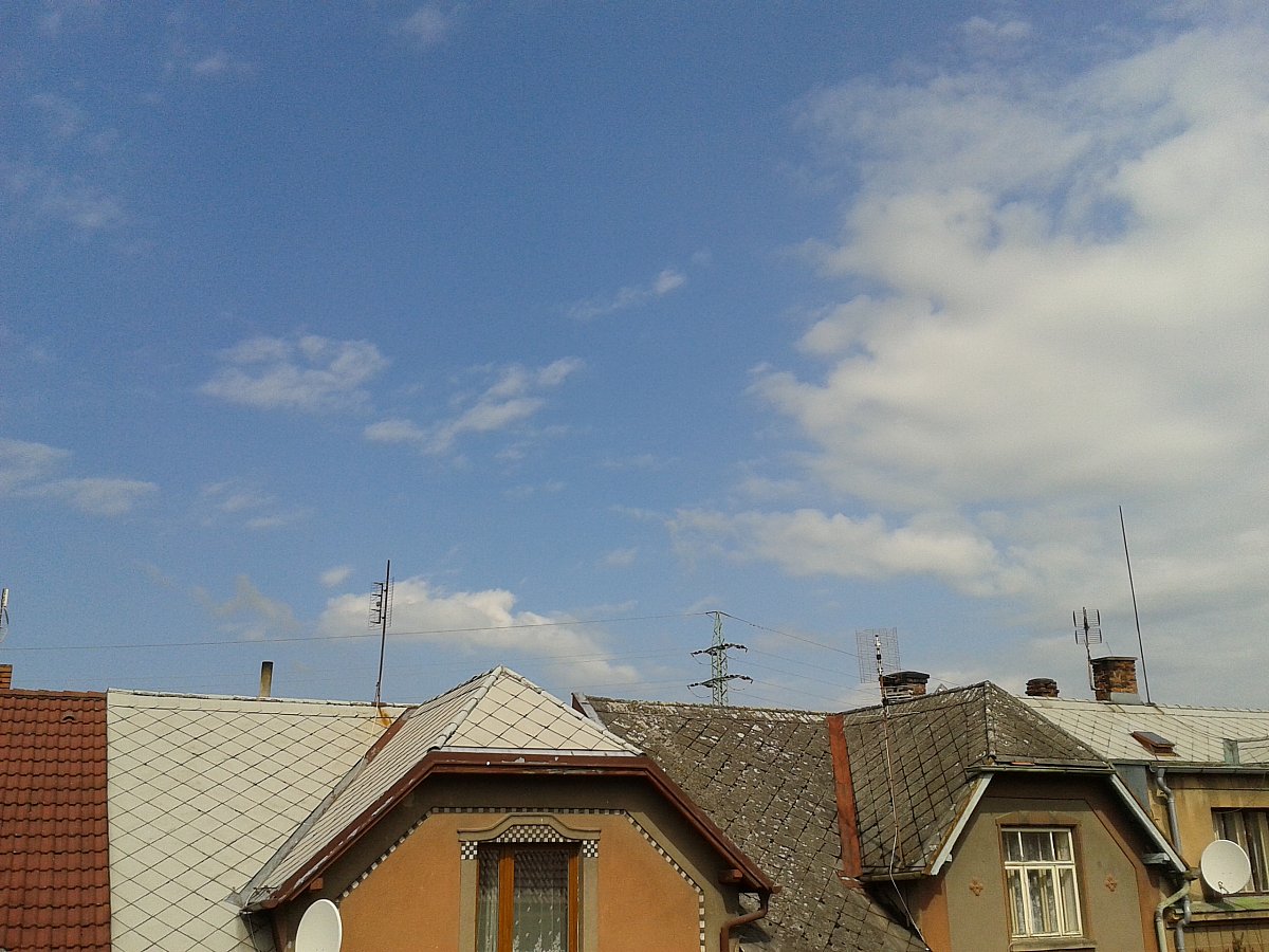 ... z ranního skorozcelazatažena o deváté jenom šmoulí modrá je dobrá, nyní semtam načechraný obláček (3/10), hodně mírný JV větřík občas se silnějším závanem...
