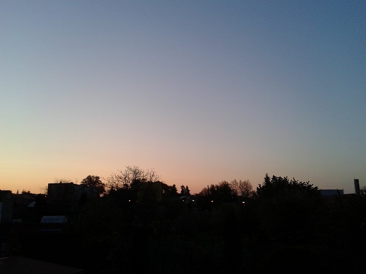 Převážně vysoká oblačnost. Bezvětří, tlak 1022,4 hPa a vlhkost 75 %.