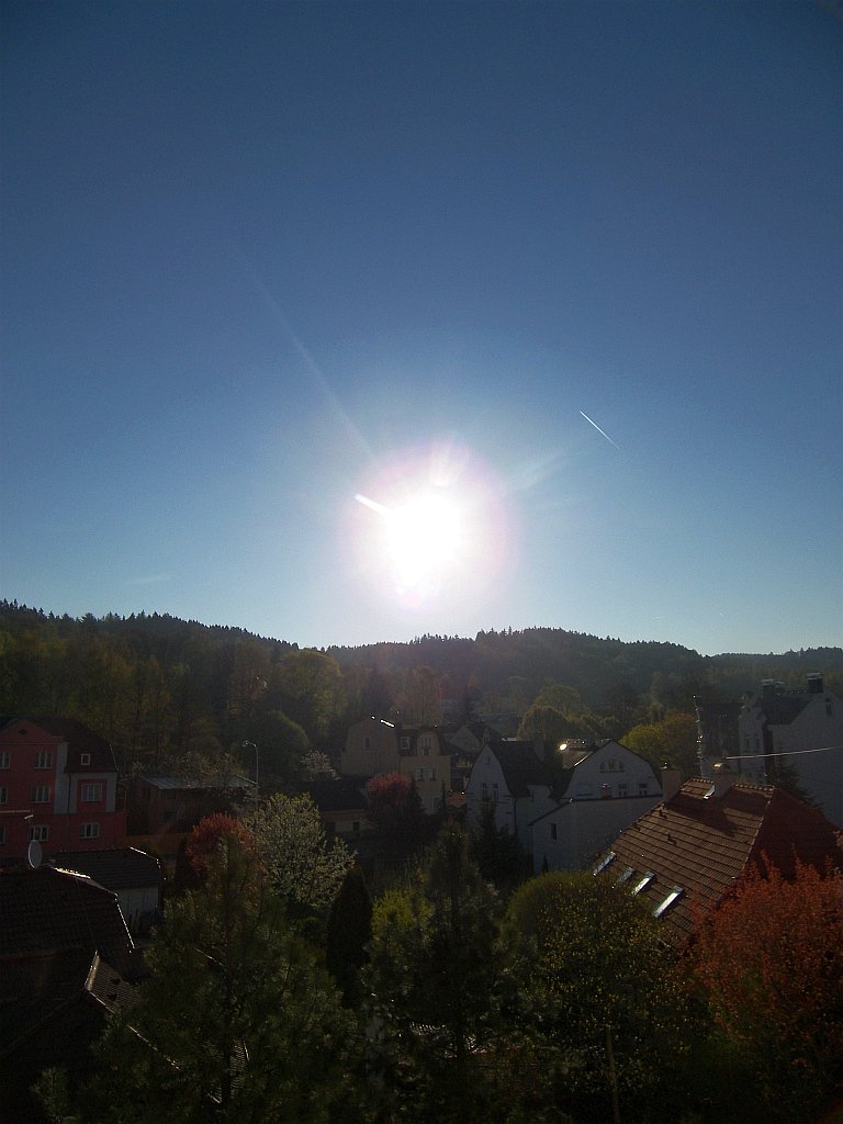 Oblačnost 5,6%, zákl.oblačnosti 1023,8hPa↓, dohlednost 35km, rel.vlhkost 82,7%, abs.vlhkost 8,34g/m3, JZ vánek 214° 1,05m/s(1 Bft), poc.teplota 9,95°C, ochl.větrem 11,41°C, tepl.ros.bodu 8,34°C, tepl.mraků 6,37°C, délka dne u nás = 14hod.54min.1vt.