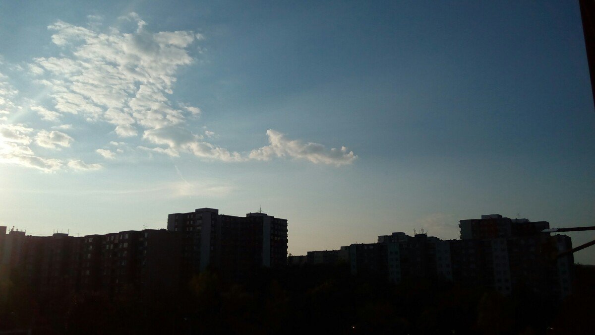 Je skoro zatazeno a vitr vane slaby az mirny. Spadlo i par kapek.