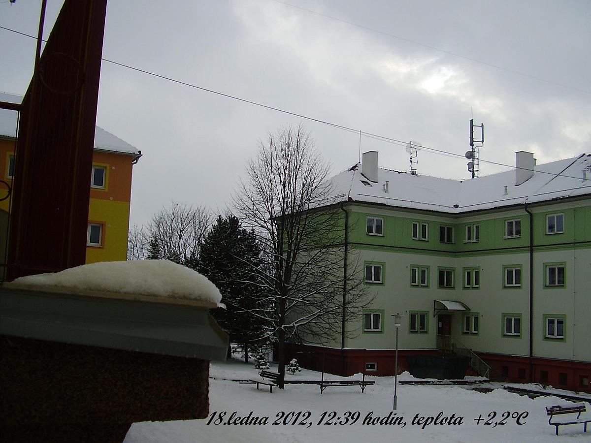 milá připomínka ročního období, které bude následovat po tomto, k ránu se vyjasnilo a je nádherný slunečný den, slabý vítr do 2 m/s, je teplo, min -7,4 °C, sníh 6 cm ale už zítra s největší pravděpodobností po něm nebude ani památky, vlhkost 67 % ...