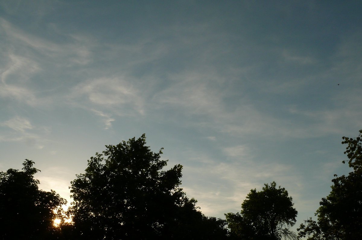 foto z 2016 05 22 v 19:15:10 zachycuje sluníčko, které se chovává za střechy - teplota z 25° začala klesat - bylo v tu chvíli 23°, přes den foukal docela silný teplý vítr