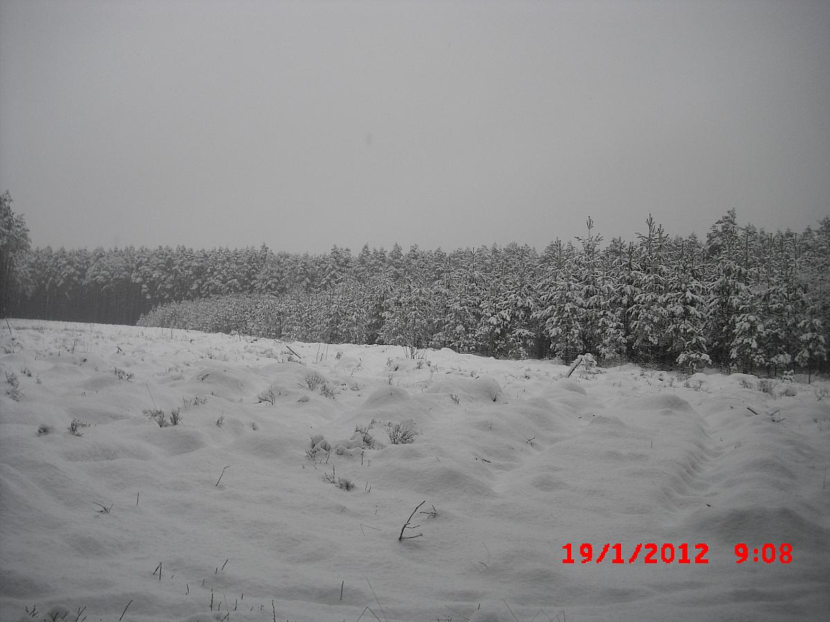 Zataženo, hustě sněží, tlak 1020,9 hPa, viditelnost 500m, vítr J 0,6m/s, vlhkost 95,7%.