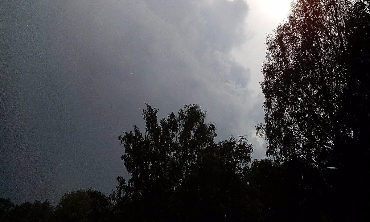 ... hodně větrno - točící se "severák - předbouřňák", půl hoďky hřmí, spadlo jen pár kapek, oblačnost (7/10) - i bouřková různě po obloze a mezi ní v blankytu úspěšně kličkuje sluníčko flekatíc naše údolíčko...