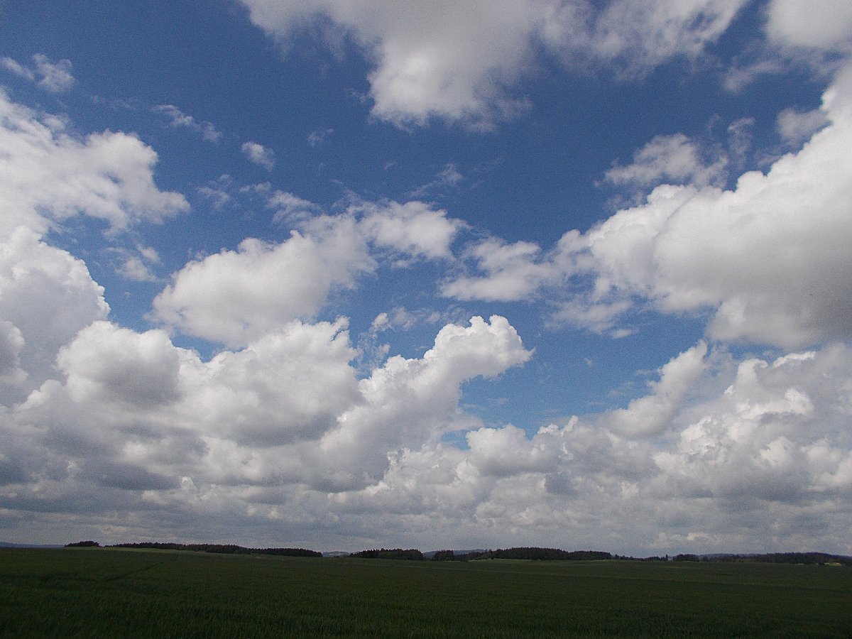 Oblačno až polojasno s kupovitou oblačností, teplo ... pohled na rybník Jakub ...