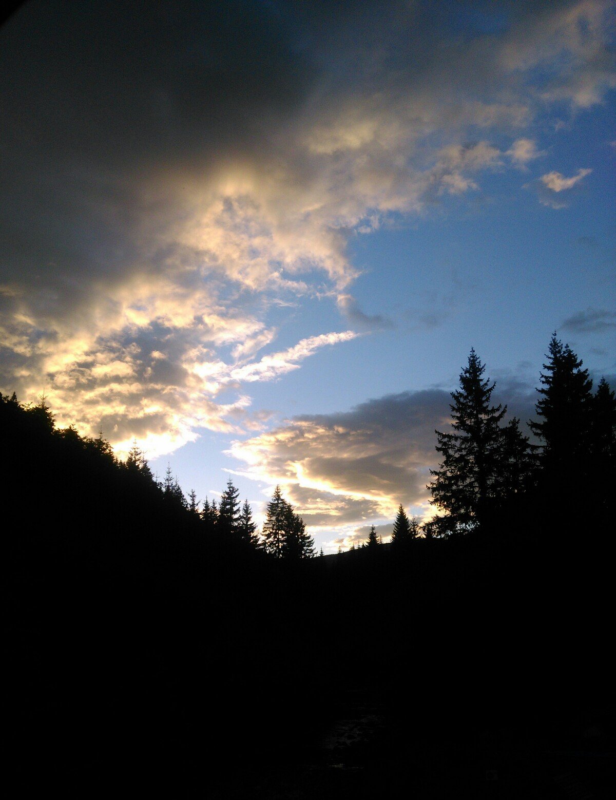 Krásný večer, ojediněle rozpadající se kupovitá oblačnost.
