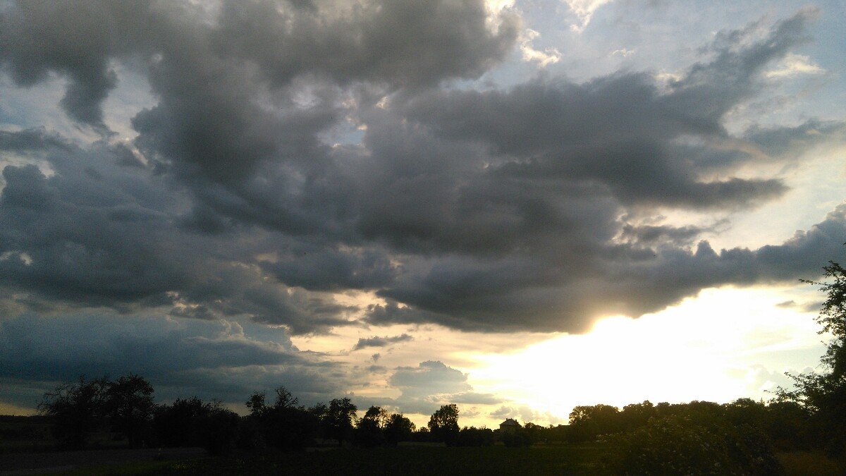 Po dešti, bouřka směřuje na Náměšť n.O., slabý JV vítr.
