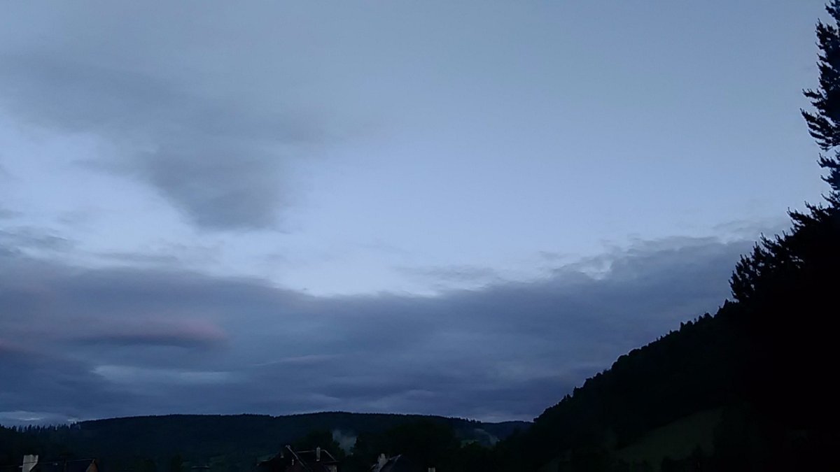 Oblačnost 61,2%, zákl.oblačnosti 489,82m.n.m., tlak 1015,6hPa↓, dohlednost 20km, rel.vlhkost 96,9%, abs.vlhkost 8,33g/m3, SV vánek 43° 1,1m/s(1 Bft), poc.teplota 7,42°C, ochl.větrem 8,56°C, tepl.ros.bodu 8,13°C, teplota mraků 7,24°C, délka dne u nás = 15hod.57min.47vt.