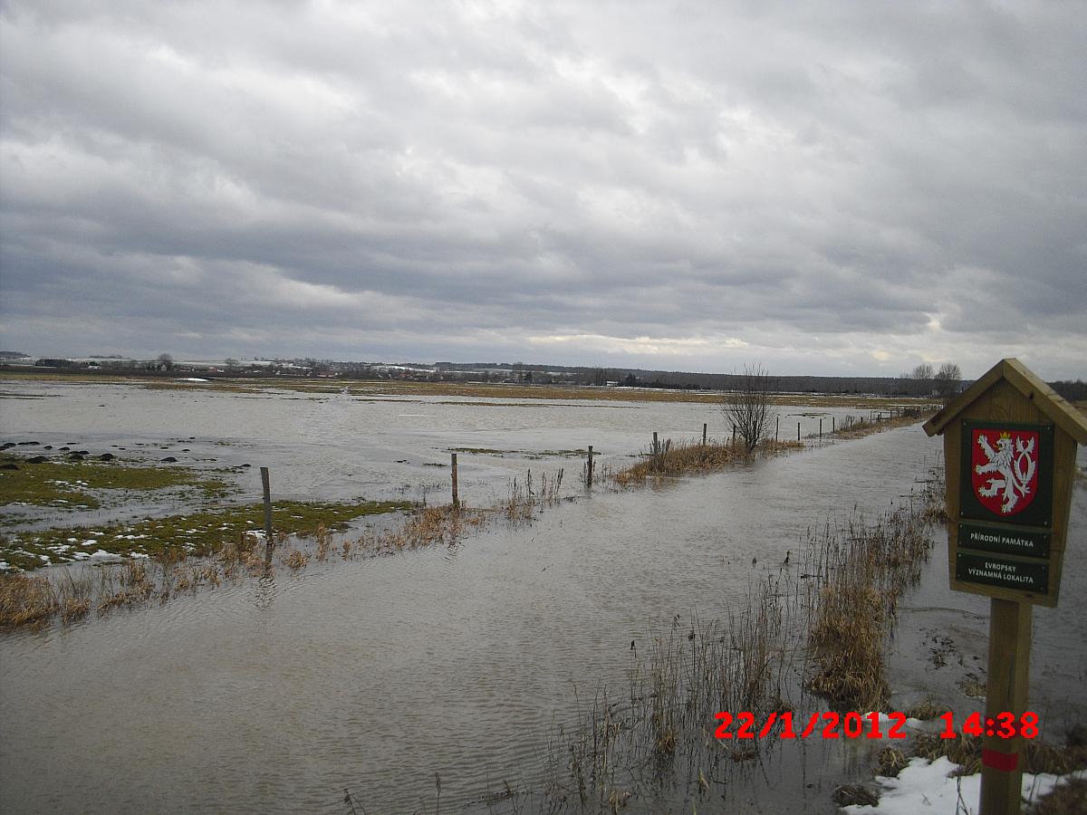 pohled na Trosky z hráze vypuštěného rybníka, foceno dnes v 1