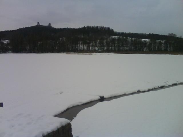 pohled na zasněženou krajinu Českého ráje, foceno dnes v 1